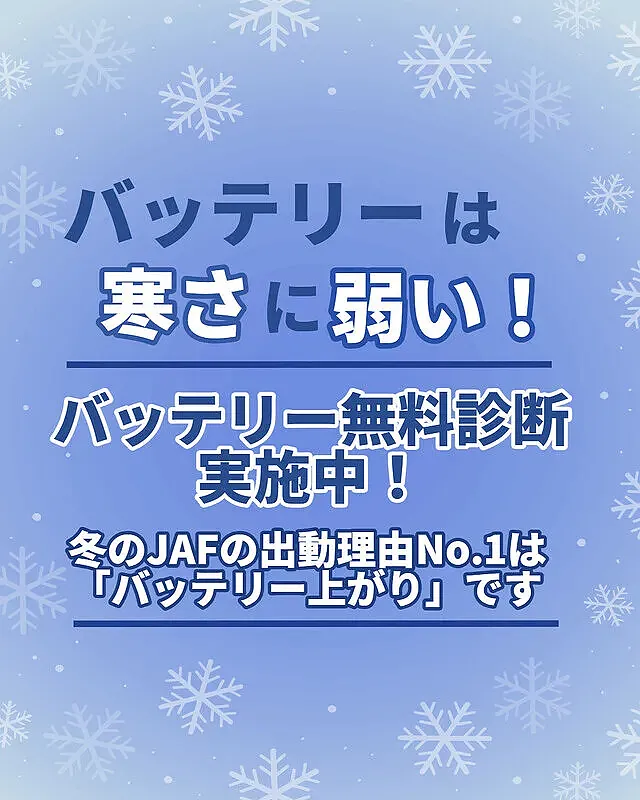 また、寒いこの季節はバッテリーあがりは年間で一番多く、