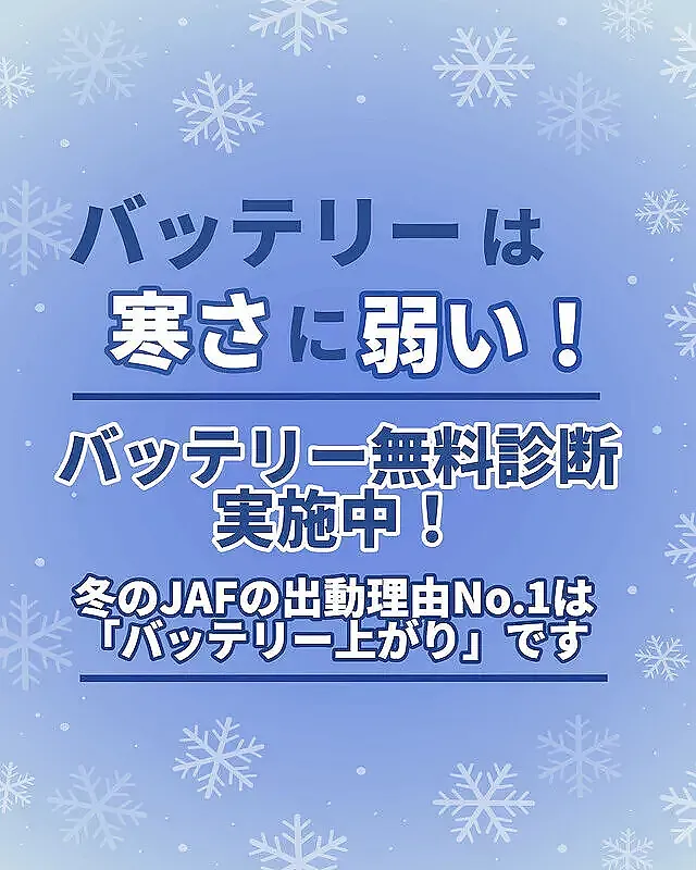 また、寒いこの季節はバッテリーあがりは年間で一番多く、